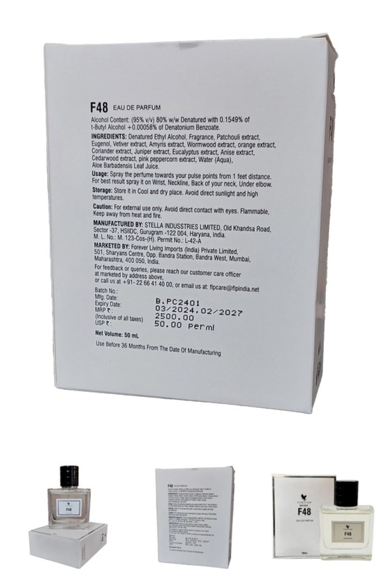 از عطر Forever F48 فقط برای مصارف خارجی استفاده کنید. از تماس عطر با دهان، بینی و چشم خودداری کنید.